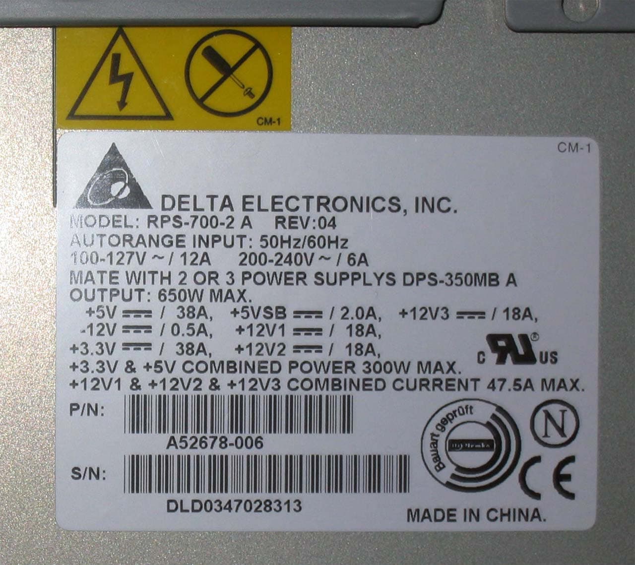 Каждый блок рассчитан на 350 ватт. Блоки питания произведены Delta Electronics.
