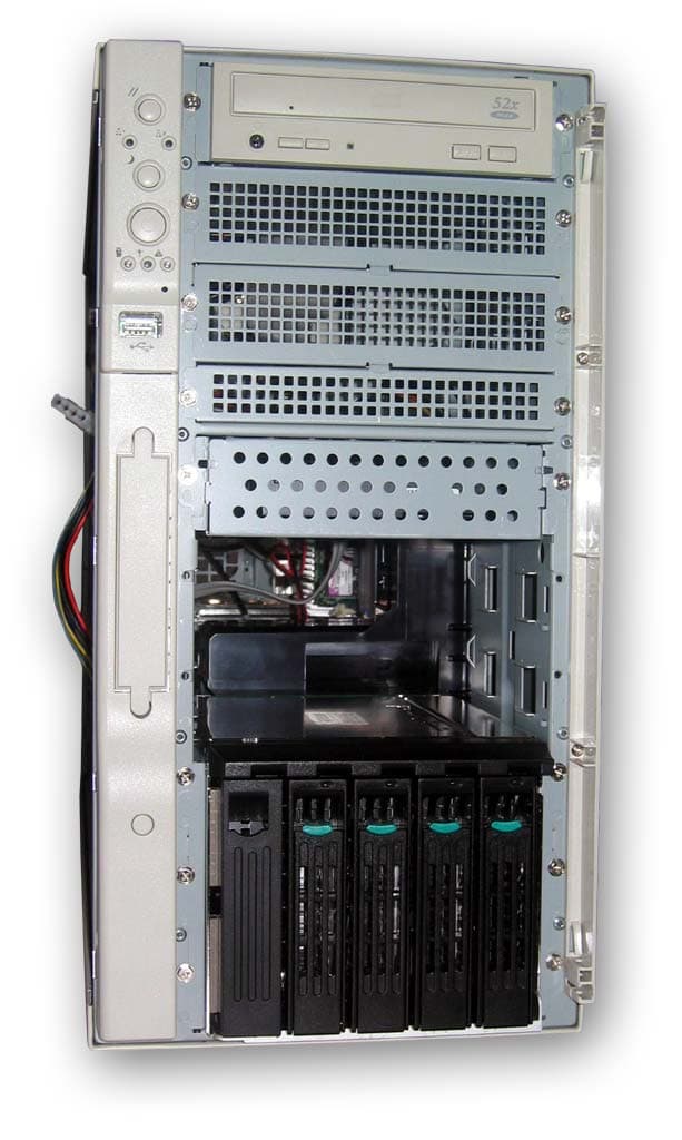 Стандартно корпус идёт со SCSI-корзиной на 5 дисков.