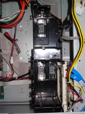 Одно но: если надеть на корпус «морду», её нижняя кромка блокирует доступ к дискам она не даёт выдвигаться фиксатору, он при выдвигании смещается немного вниз.