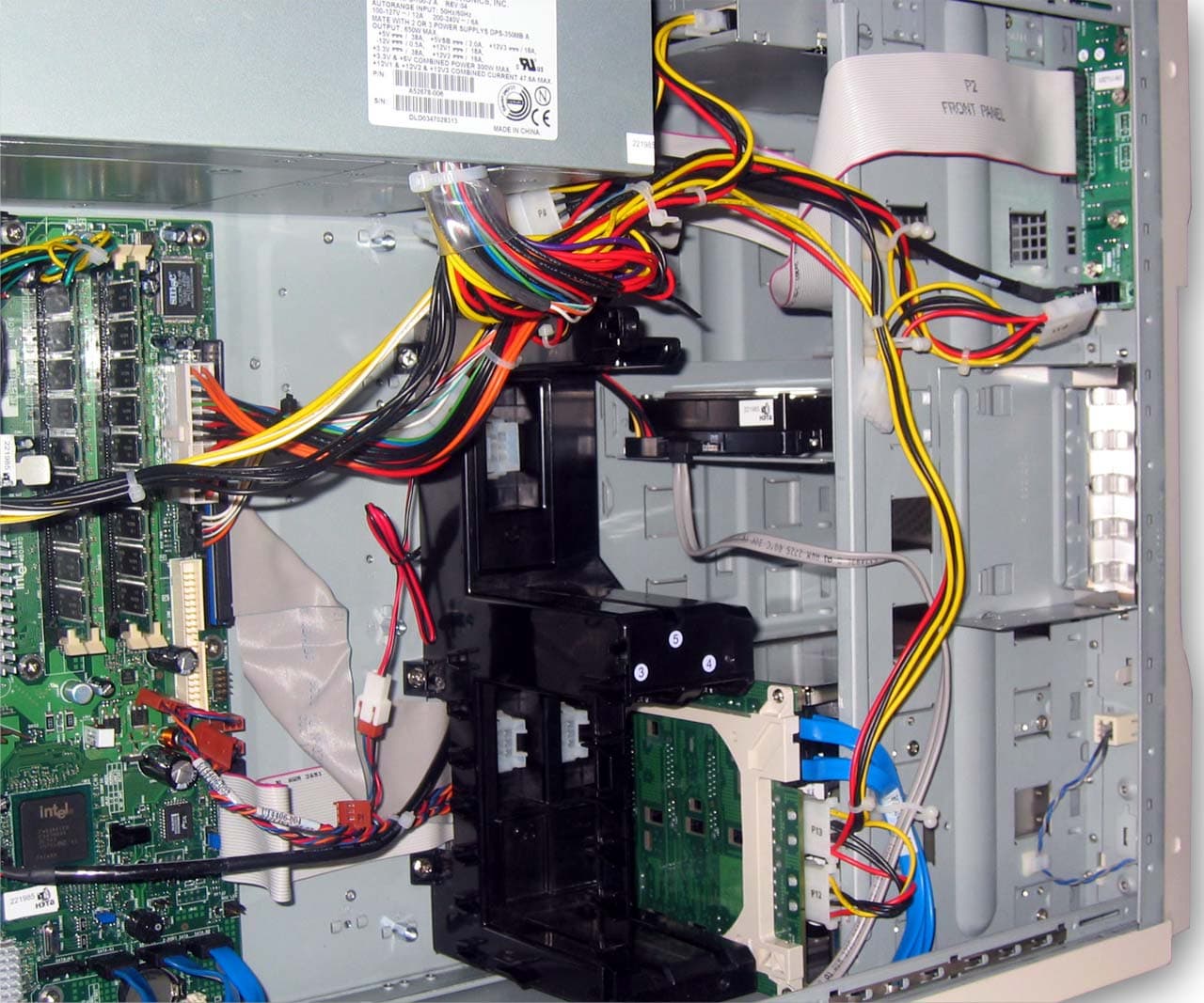 Мы решили купить новый файл-сервер, взамен убогого в данном назначении компьютера на Дуроне. Ставку сразу сделали на Serial ATA в лице Western Digital Raptor. Под них и выбирали корпус. Как оказалось, SuperMicro с корзинами под Serial ATA привезти в принципе невозможно, а у другого бренда — Intel — есть только два корпуса с нужными нам корзинами (точнее, только в два корпуса можно поставить эту самую корзину): SC5250 и SC5200.