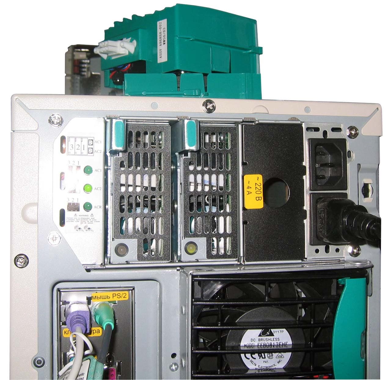Два разъёма питания позволяют подключить сервер к независимым линиям.
