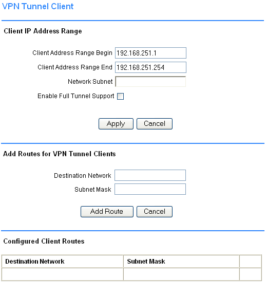 При настройке VPN-туннеля задается диапазон используемых IP-адресов, которые назначаются подключаемому пользователю — данные адреса не должны пересекаться с IP-адресами, работающими в локальной сети, к которой мы подключаемся посредством VPN-туннеля. Также присутствует возможность задавать правила маршрутизации для VPN-туннеля.