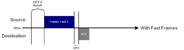 Технология Fast Frames предлагает слияние двух кадров в один, большего размера. Тем самым, мы избавляемся от служебной информации (в заголовке второго пакета — остается лишь один заголовок нового кадра) и временных пауз ожидания между кадрами:
