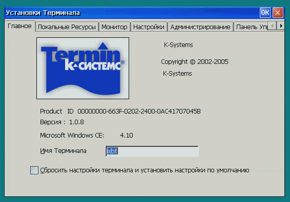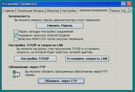 Так выглядит панель управления Windows CE на терминале