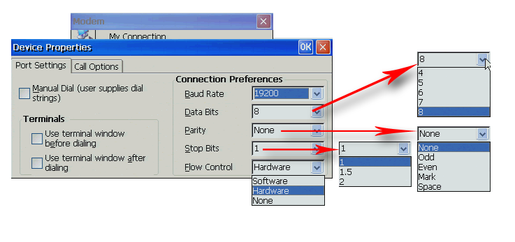 Типичные настройки для соединения