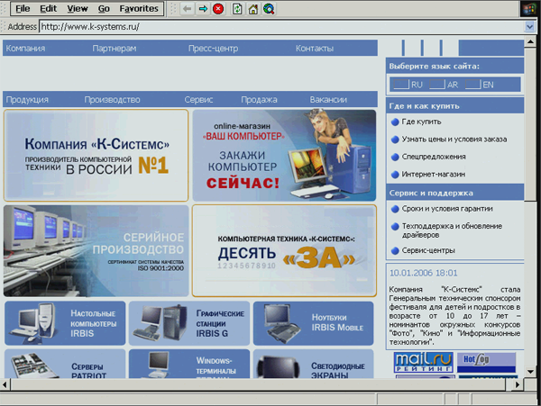 Встроенный Web-браузер поддерживает SSL 2.0 и 3.0 и позволяет беспроблемно путешествовать по WEB не подключаясь к терминальному серверу. Технологии activeX, такие как Macromedia Flash и т.п., к сожалению не поддерживаются.