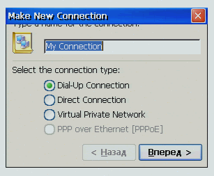 Настройки соединения через модем очень напоминает те же настройки, что и в Windows XP