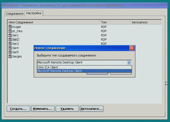 При создании нового соединения выбирается тип используемого подключения — либо это клиент Microsoft удаленного доступа к рабочему столу, либо клиент Citrix.