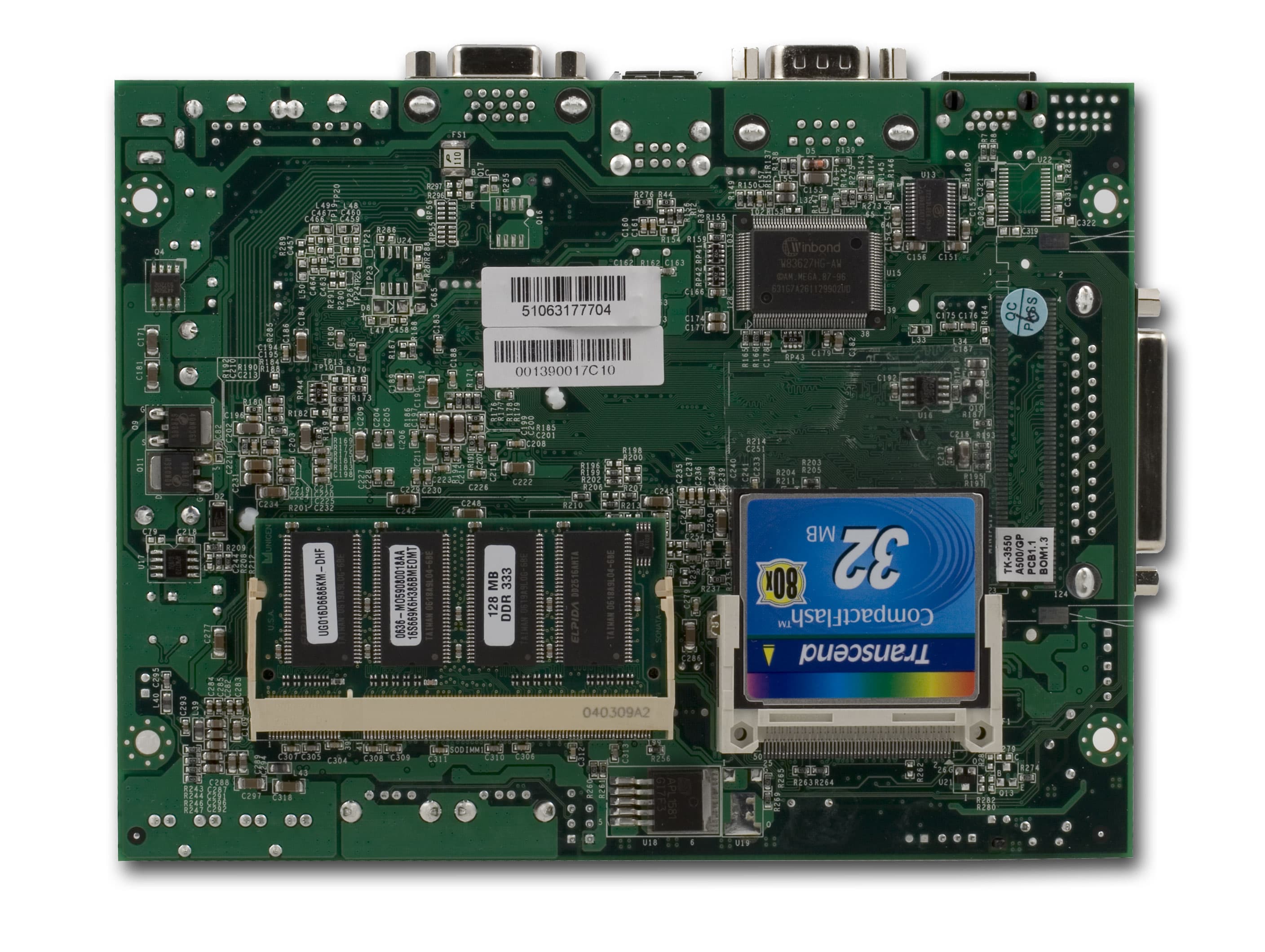 Итого: на плате установлено 128 Мбайт оперативной памяти и 32 Мбайта Flash-памяти в виде модуля CompactFlash.