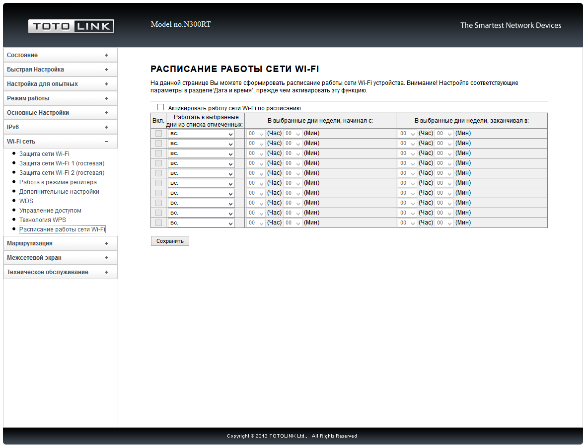 Для беспроводного контроллера предусмотрено использование белого или черного списка клиентов, а также установка расписания работы по дням недели (до десяти интервалов с точностью до минуты).