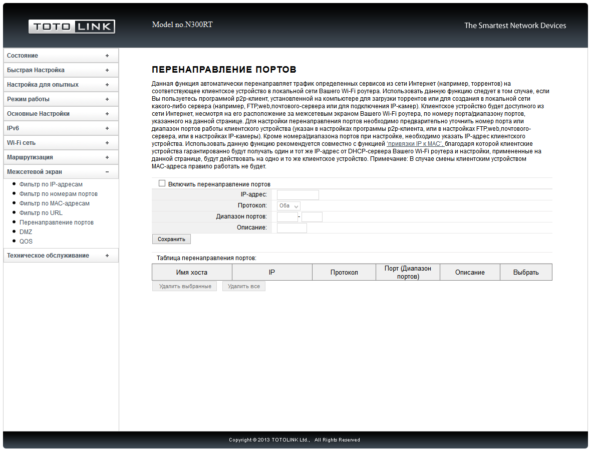 Доступ к локальным сервисам из интернета обеспечивается поддержкой UPnP, DMZ и пользовательских правил трансляции портов. В последних можно использовать диапазоны, однако нет возможности иметь разные номера внутренних и внешних портов. Работу UPnP проконтролировать нельзя.