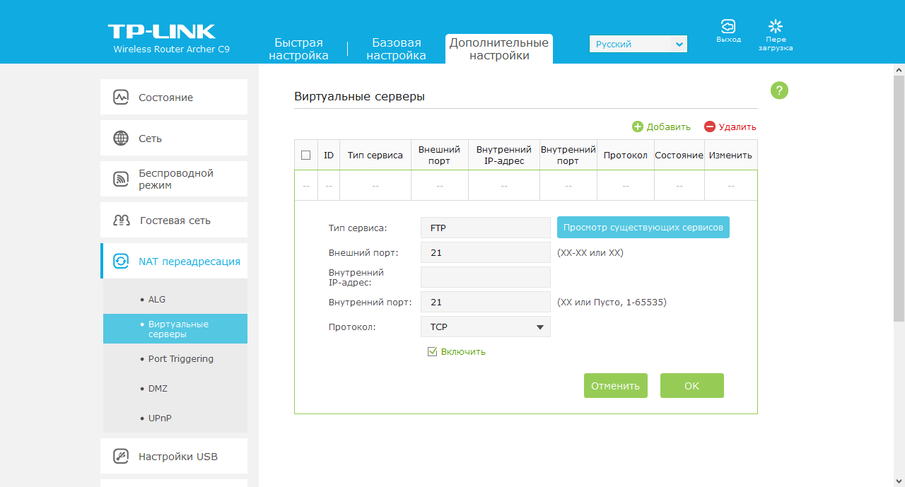 Доступ из интернета к сервисам на локальных компьютерах можно обеспечить через DMZ, UPnP и ручные правила трансляции портов. Отметим также наличие ALG для популярных протоколов.