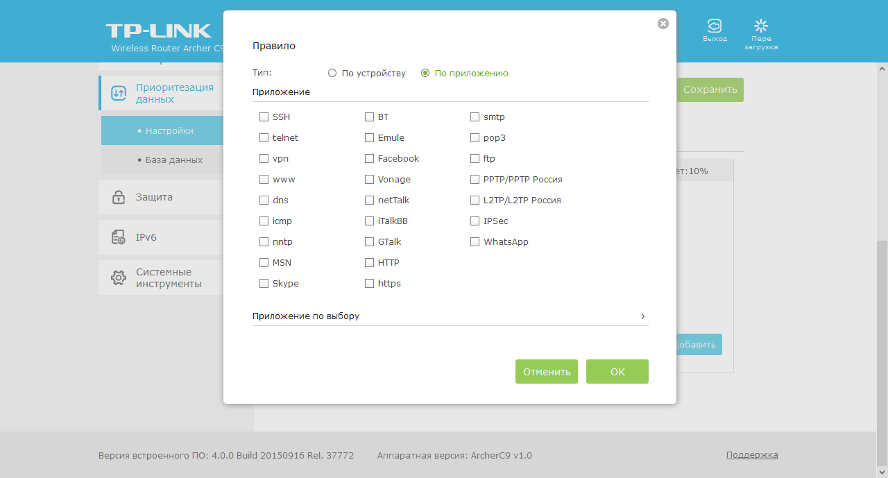 Тестирование роутера проводилось с прошивкой версии 4.0.0 Build 20150916 Rel. 37772.