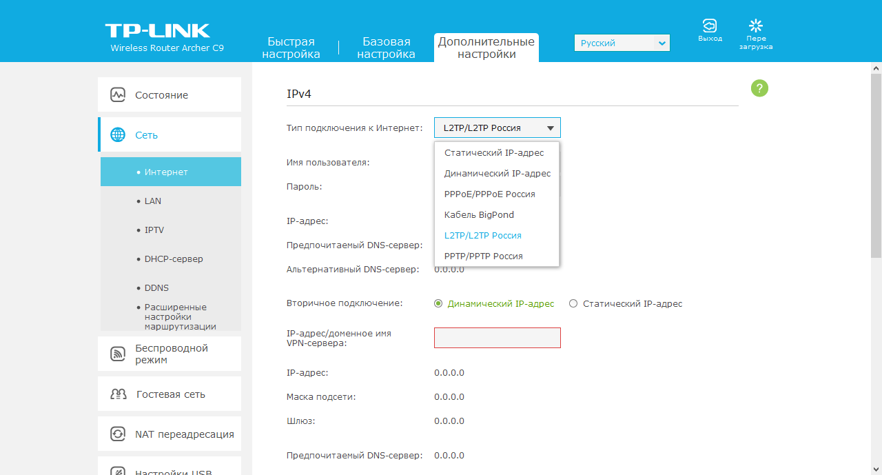 Для реализации всех заложенных в прошивке роутера возможностей стоит воспользоваться наиболее полным вариантом интерфейса, доступ к которому осуществляется через пункт «Дополнительные настройки». В частности, на его странице «Состояние» можно проверить IP- и MAC-адреса интерфейсов и использование ресурсов процессора и оперативной памяти.