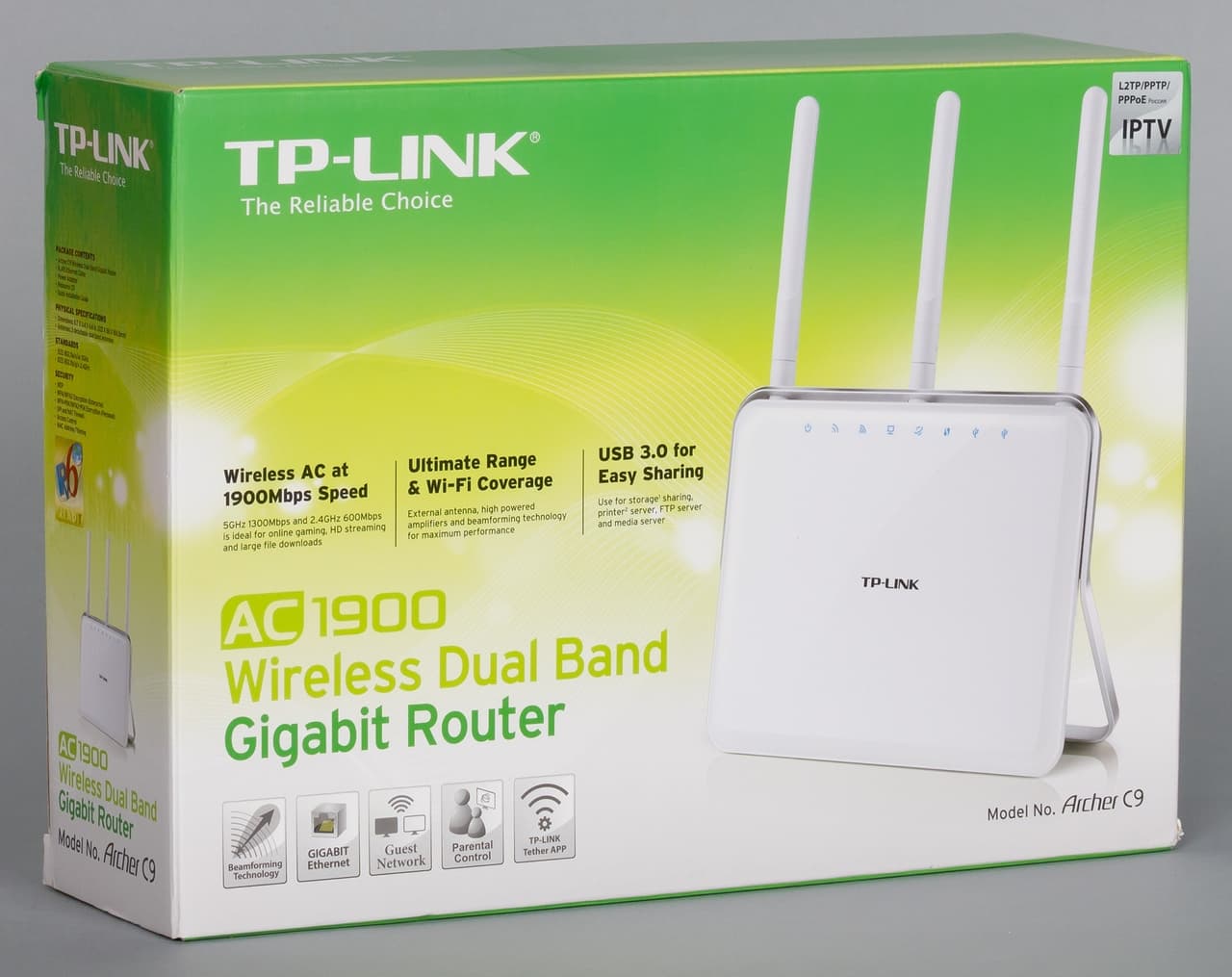 Продукты с поддержкой протокола 802.11ac выходят у TP-Link под брендом Archer. С первым представителем серии, роутером Archer C7, мы познакомились почти три года назад. В начале этого года была протестирована младшая модель — Archer C2. А в этой статье мы рассмотрим занимающее верхнюю позицию устройство Archer C9.