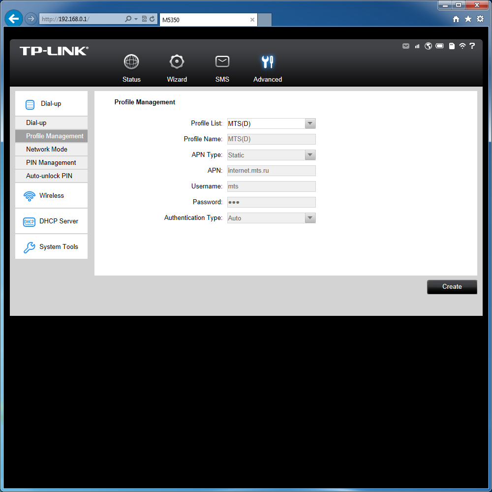 В разделе интерфейса Advanced находятся страницы для изменения настроек роутера. В случае использования нестандартного оператора или режима подключения, здесь можно настроить новый профиль доступа. Также есть выбор режима подключения (автоматический или ручной), указание PIN-кода карты, выбор типа сети (2G, 3G или «Авто»).