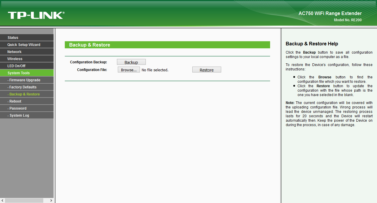 Отметим, что повторитель в этом режиме получает IP-адрес от основного роутера, так что при необходимости вы можете обратиться к его веб-интерфейсу для изменения параметров. Дизайн у него стандартный для данного производителя — дерево меню слева и справочная информация в правой колонке. А вот язык есть только английский. Заметим, что для активации многих параметров потребуется перезагрузка устройства, но в данном случае это не является существенным недостатком.