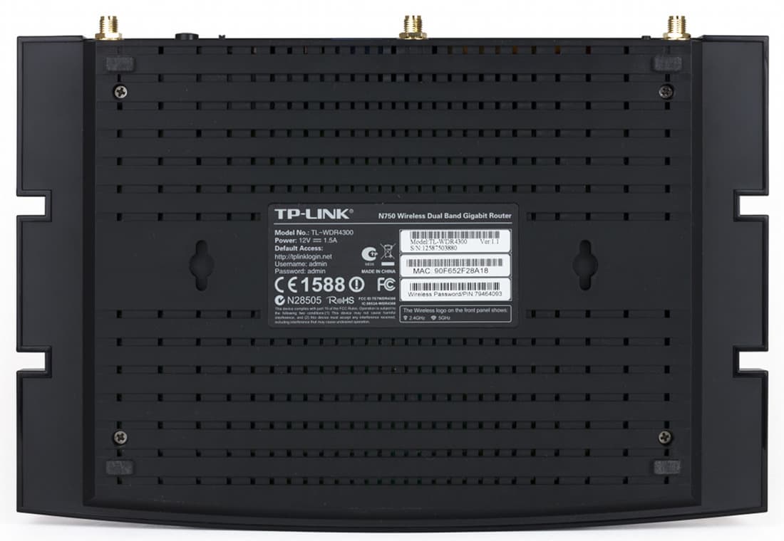 Для TL-WDR4300 была выбрана платформа Qualcomm/Atheros: центральный процессор AR9344 (MIPS 74Kc, 560 МГц, имеет встроенный контроллер Wi-Fi на 2,4 ГГц с поддержкой режима 2T2R до 300 Мбит/с), второй радиоблок AR9580 для работы в диапазоне 5 ГГц (3T3R, до 450 Мбит/с) и гигабитный коммутатор AR8327 (поддержки Jumbo Frames в текущей версии прошивки нет). Объем оперативной памяти устройства составляет 128 МБ, а для прошивки установлено 8 МБ флэш-памяти. Дополнительно на плате можно обнаружить USB-хаб GL850G.