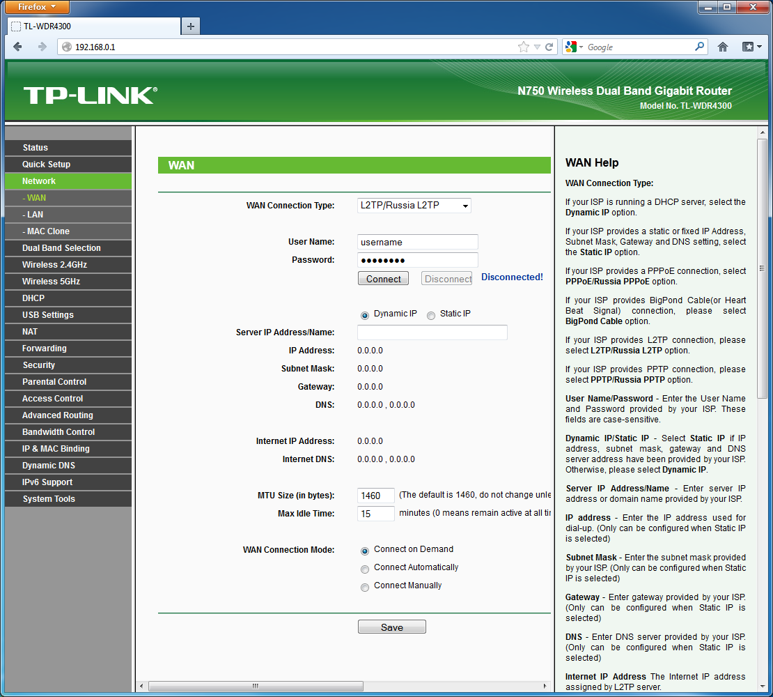 Ничего нового или необычного с настройкой роутера не придумали. Все тот же web-интерфейс, защищенный паролем. Дизайн его также традиционный — дерево меню в левой части, страницы с параметрами в центре окна, справочная информация справа. В текущей версии прошивки интерфейс только на английском языке. Выпуск русифицированной версии ожидается в феврале. Для первой настройки можно использовать «Quick Setup», но в нем не предусмотрены такие варианты как PPTP и L2TP. Доступ к настройкам можно ограничить — предусмотрено указание четырех MAC-адресов для локального доступа и один IP-адрес для удаленного. В последнем случае можно также изменить номер порта.