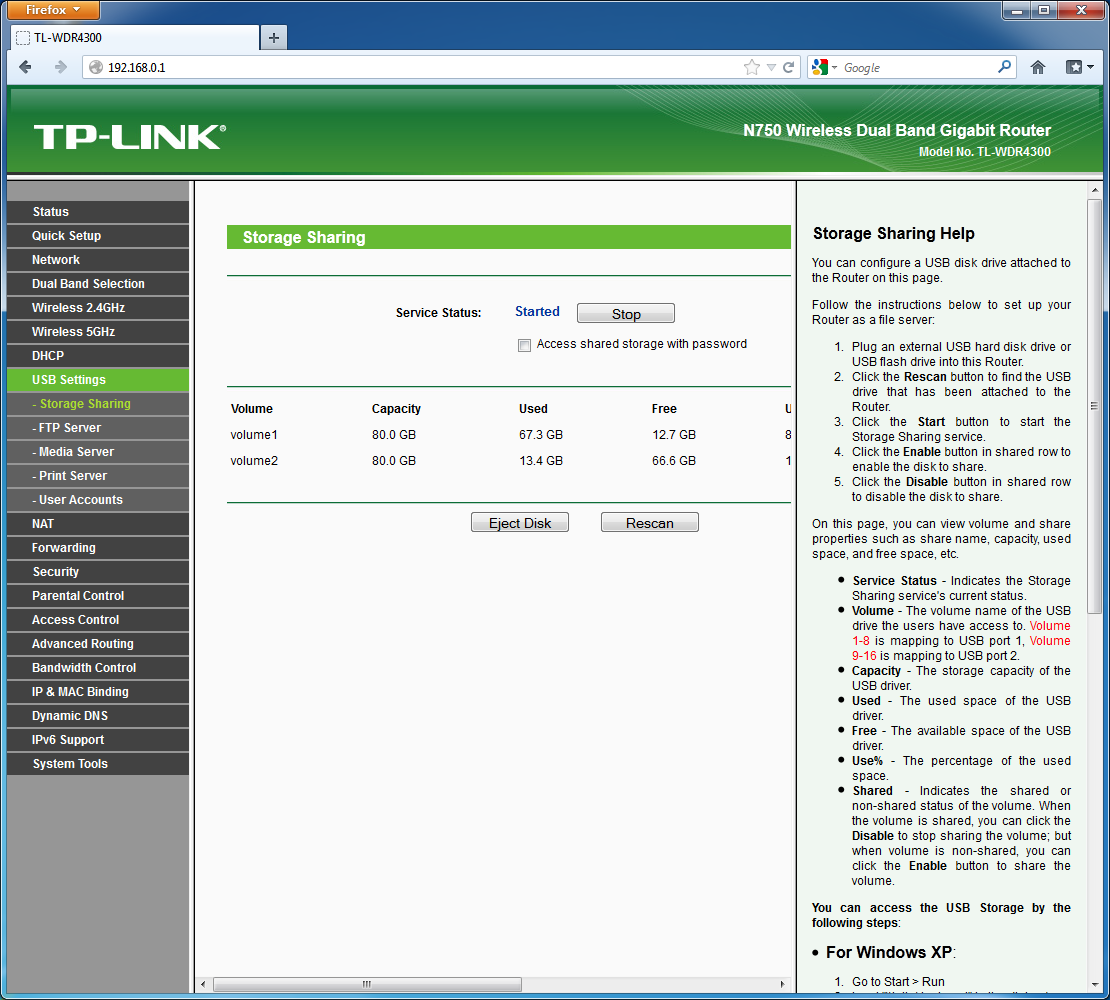 Отключение дисков осуществляется только через Web-интерфейс. Обратить внимание также нужно на то, что просто подключить накопитель для работы FTP и медиасервера будет недостаточно. Эти сервисы требуют обязательной настройки доступных ресурсов.