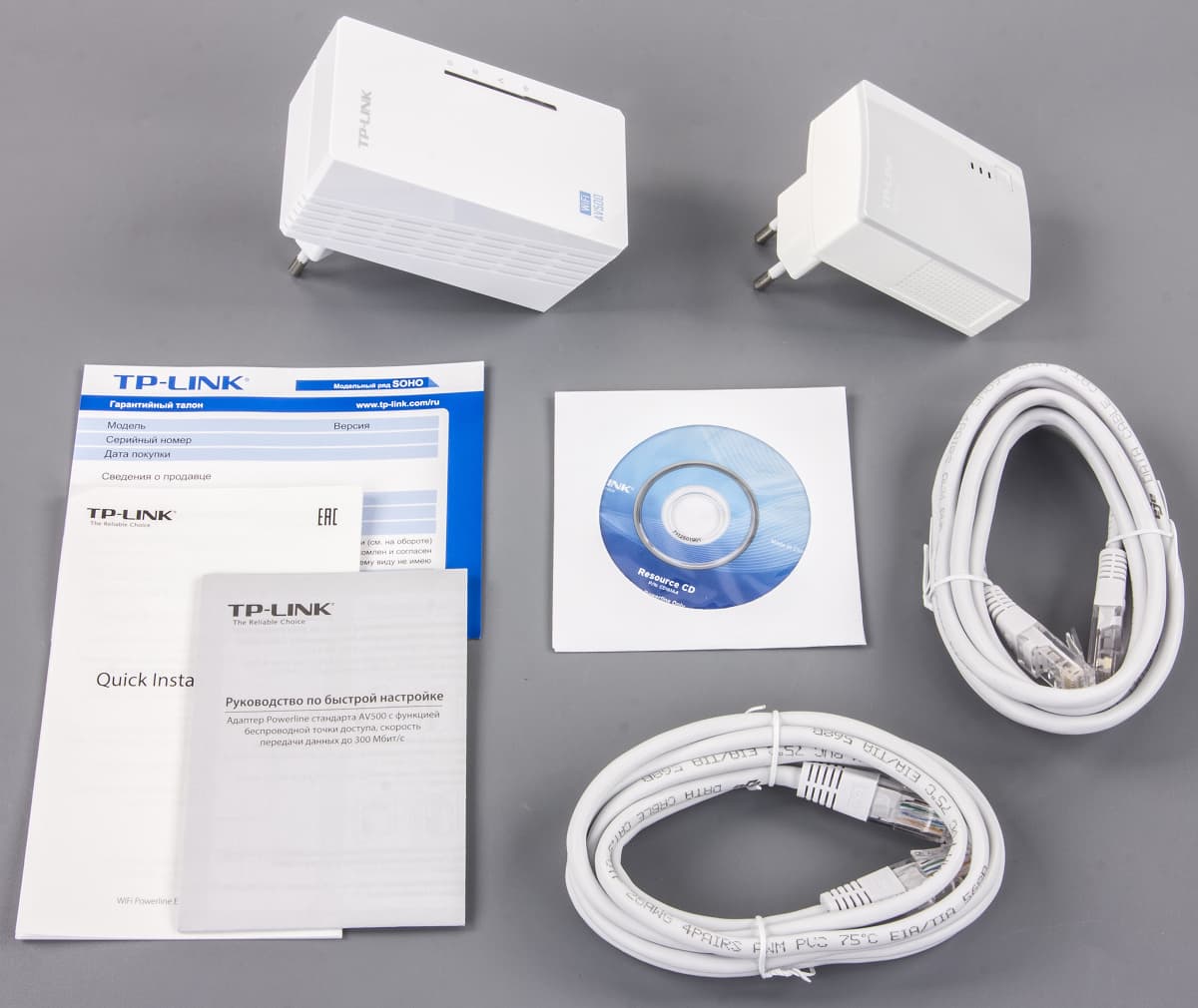 Комплект состоит из основного устройства TL-WPA4220, адаптера TL-PA4010, пары сетевых кабелей, инструкции по быстрой настройке, компакт-диска с электронной версией документации и утилитами, а также гарантийного талона. Отметим, что локализация коснулась только вложенной печатной инструкции и гарантийного талона.