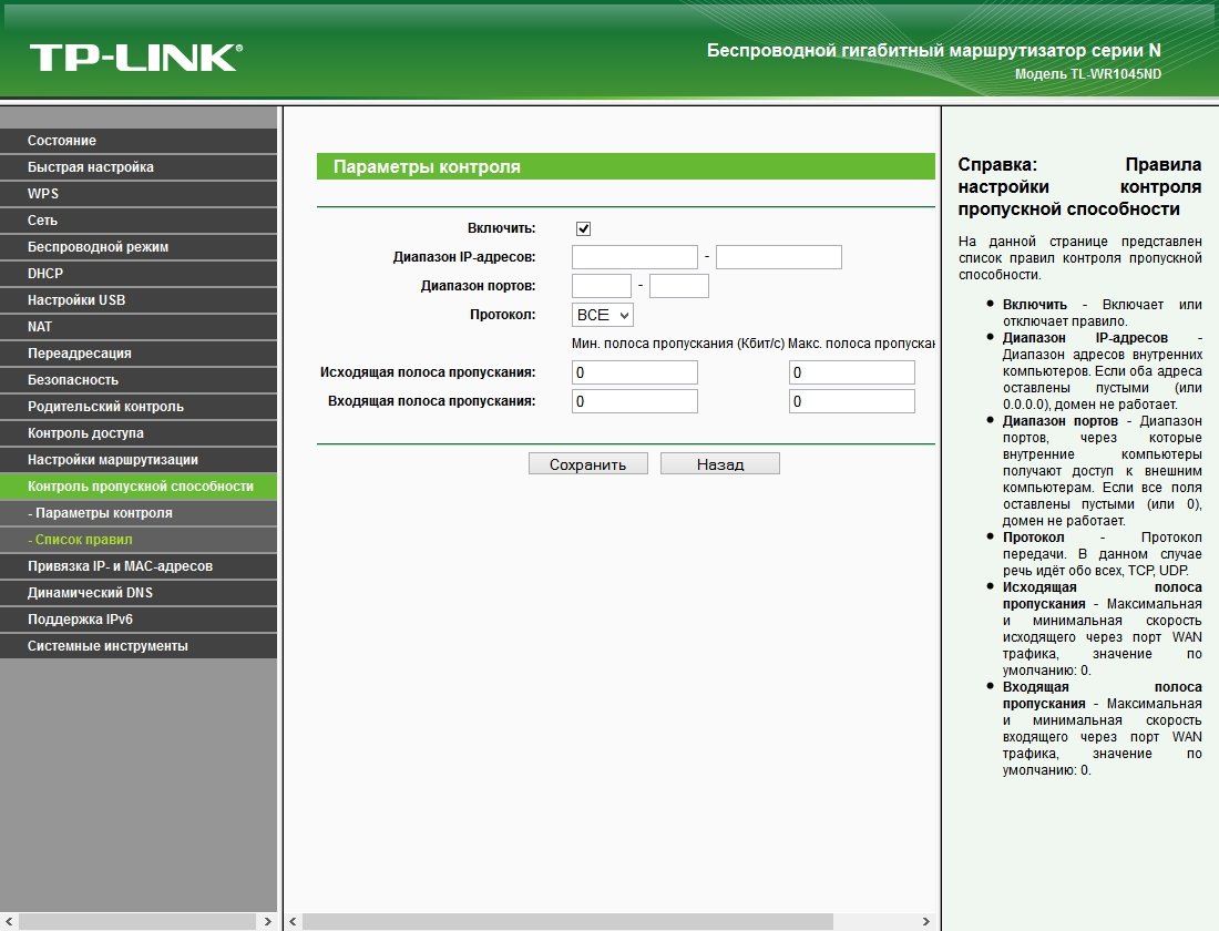 Рассматриваемая модель роутера имеет функции управления трафиком, в правилах которой можно использовать IP-адреса локальных клиентов, номера удаленных портов и ограничения на скорости загрузки и отправки. Границы соблюдаются достаточно точно, так что в некоторых ситуациях этот сервис может оказаться полезным. Например, для ограничения особо активных клиентов локальной сети. Но не стоит забывать о том, что эта функция создает существенную нагрузку на процессор устройства.