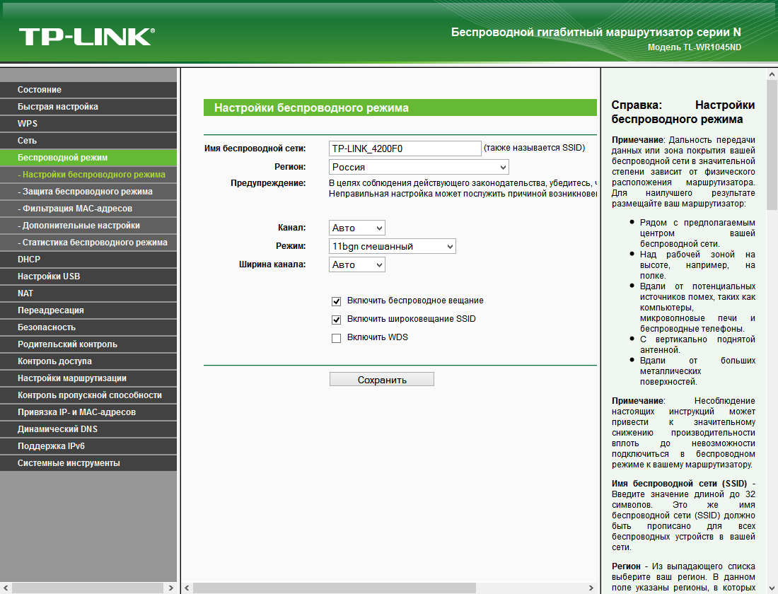 Рассматриваемая модель использует платформу Qualcomm. Этот производитель давно не встречался в наших статьях, но и сегодня он достаточно популярен. В TP-Link TL-WR1045ND установлен процессор QCA9558, имеющий архитектуру MIPS и частоту 720 МГц. В него встроен радиоблок с поддержкой стандартов 802.11b/g/n в диапазоне 2,4 ГГц с максимальной скоростью соединения 450 Мбит/с.
