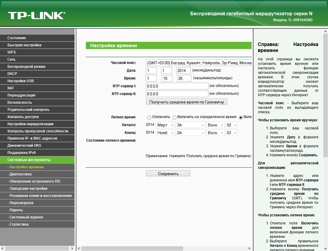 В группе «Системные инструменты» мы видим привычные страницы обновления прошивки, работы с конфигурацией, изменения пароля, настройку времени. Заметим, что можно поменять не только пароль администратора, но и его имя, а встроенные часы умеют синхронизироваться через интернет.