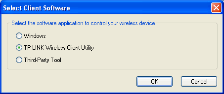 Есть в утилите и еще одна функция, которая почему-то не упомянута в User Manual, но при работе с сетью иногда может привести к недоразумениям, а порой окажется полезной: это выбор приложения, управляющего беспроводным адаптером. Можно выбирать между описанной выше утилитой, встроенным в Windows механизмом и иными программами, если таковые установлены в системе. После того, как выбор сделан, управление из других приложений становится частично или полностью недоступным — так, если мы остановились на утилите от TP-LINK, то встроенный в Windows механизм не сможет даже отобразить список сети (не пугайтесь!). Добраться до этой функции в TP-LINK Wireless Client Utility можно через верхнее меню: Options — Select Client Software.