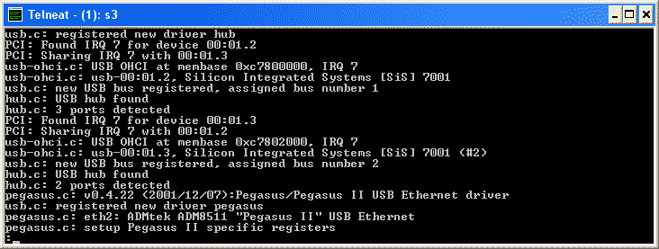 Собственно, опция самого драйвера адаптера называется “USB ADMtek Pegasus-based ethernet device support”. Возможно его работа как в составе ядра, так и модулем (в случае модуля в /etc/modules.conf достаточно прописать нечто вроде “alias eth2 pegasus”). После пересборки ядра и перезагрузки мы обнаруживаем еще один работоспособный сетевой интерфейс. Ура! Под Linux-ом адаптер тоже работает, что не может не радовать. Ядро при загрузке выдает следующее:
