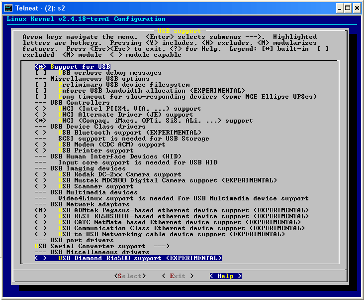 Изначально в разделе “USB Support” отсутствуют какие-либо сетевые адаптеры. Их список появляется после активации в разделе “Code maturity level options” опции “Prompt for development and/or incomplete code/drivers” (позволить показ кода и драйверов, находящихся в стадии разработки). Так как многие драйверы и опции уже по нескольку лет находятся в стадии разработки, поэтому оставлять выключенной “Prompt for development and/or incomplete code/drivers” смысла не имеет. В этом разделе нам нужны только драйверы контроллера USB и сетевого адаптера, поэтому активируем необходимый минимум: