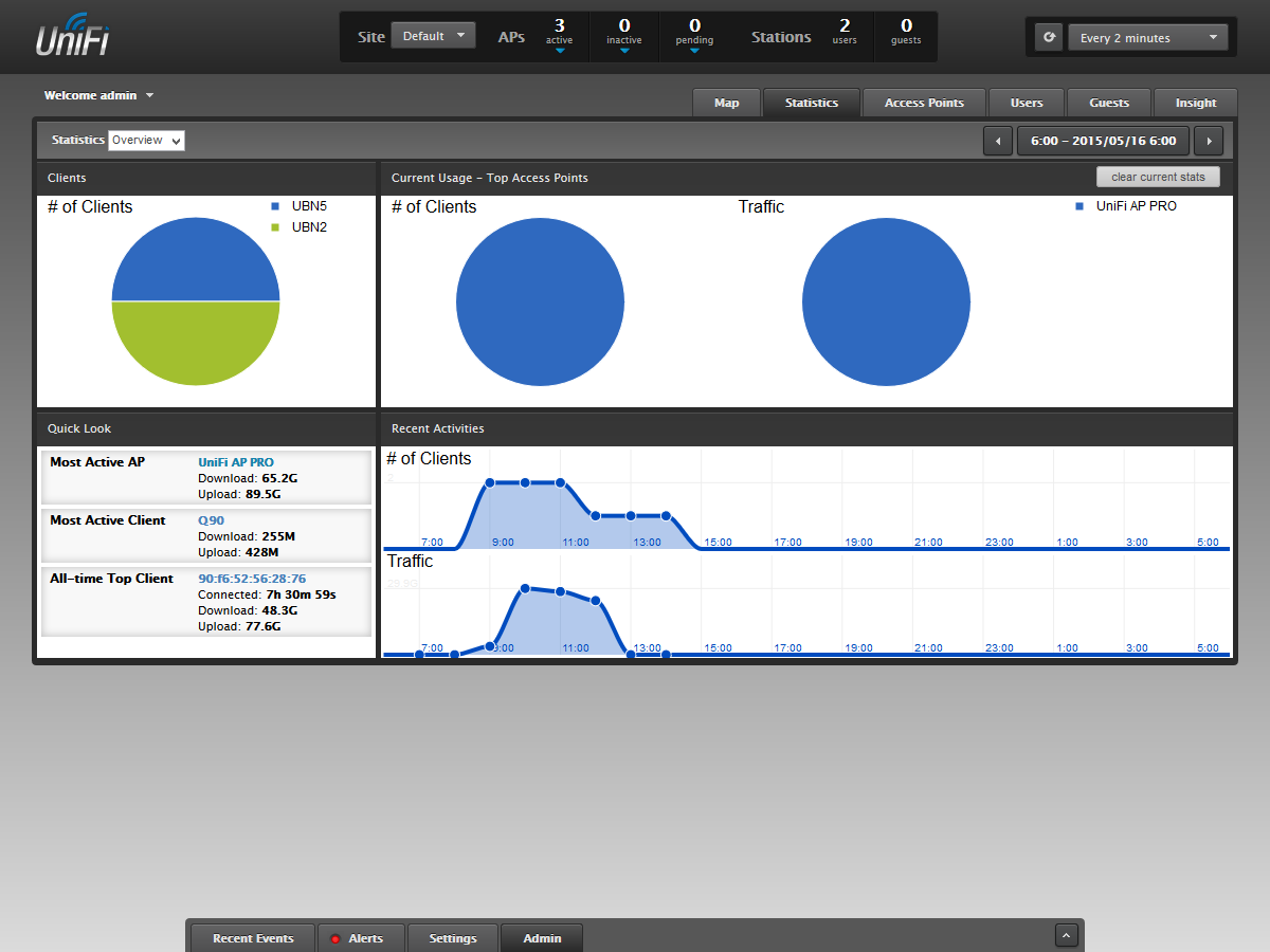 При первом запуске в случае наличия в сети точек доступа, предлагается помощник для быстрой настройки основных параметров сети. В нем, в частности, можно указать имя основной сети и ключ защиты, включить гостевой доступ, изменить имя и пароль главного администратора системы. Для дальнейшей настройки, мониторинга и управления сетью используется веб-интерфейс контроллера, доступ к которому можно получить как с локальной системы, так и по сети. При этом используется протокол HTTPS и порт 8443. При необходимости пользователь может использовать официальный сертификат вместо самоподписанного.