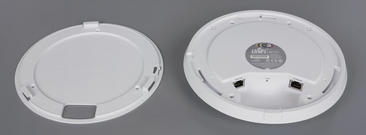 UniFi AP Pro при сохранении аналогичного младшей модели внешнего вида, оборудована уже двумя радиоблоками для диапазонов 2,4 и 5 ГГц с поддержкой скоростей подключения в них 450 и 300 Мбит/с соответственно. Улучшения коснулись и проводного порта — в этой модели установлен гигабитный контроллер, что позволяет надеяться на более высокие показатели.