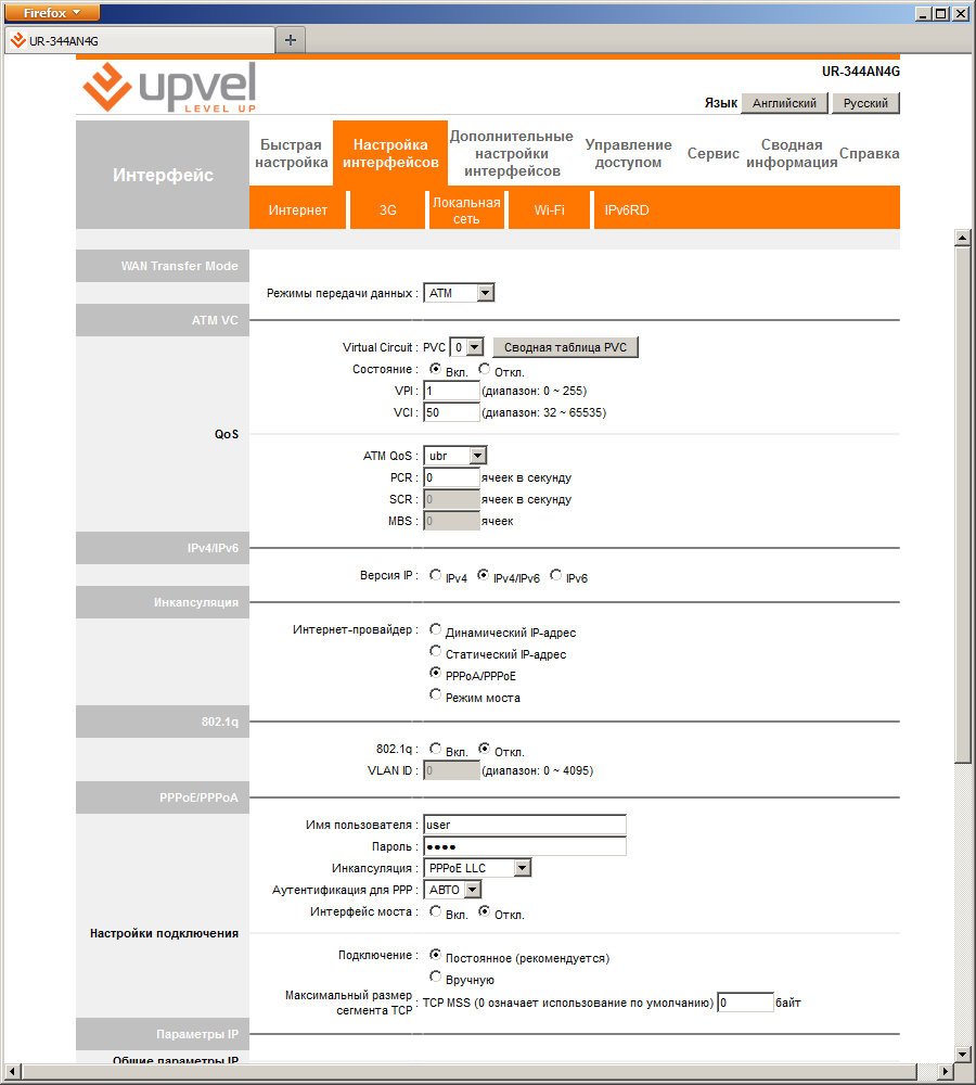 Upvel UR-344AN4G интересен, прежде всего, поддержкой сразу нескольких вариантов подключения к сети Интернет: ADSL2+, Ethernet и 3G/4G-модемы. Это позволяет расширить область применения и обеспечить работу с резервированием канала. Аппаратная платформа роутера — средняя по уровню производительности, но и ее хватает на обслуживание скоростей до 100 Мбит/с.