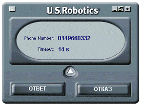 Предположим, что модем соединился на протоколе V.92 и во время сеанса связи поступил вторичный звонок. Модем инициировал так называемый «Ring Impulse» на интерфейсной цепи 125 состояние логической единицы, который и ожидает программа ICN для начала своей работы. Осуществляется перевод модема в командный режим без разрыва связи (то есть фактически подается стандартная Escape-последовательность «+++»). В этом режиме ICN в первую очередь запрашивает у модема два параметра: идентификатор звонящего (CallerID) и время, на которое модем может перейти в режим Modem-on-Hold (определяется сервером доступа Интернет-провайдера и обычно составляет порядка 3-4 минут). Пользователь видит номер звонящего (Рис. 5) и в течение 15 секунд ему необходимо принять решение об ответе на вторичный вызов (кнопка «Ответ») либо отказаться от приема звонка и вернуться к передаче данных (кнопка «Отказ»). Нужно заметить, что номер звонящего пользователь увидит только в том случае, если данная функция поддерживается и включена на электронной АТС, абонентом которой он является. В противном случае номер не будет определен.
