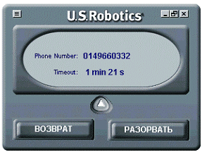 В случае, когда пользователь ответил на телефонный звонок, модемы пользователя и провайдера переходят в режим ожидания на время, определяемое провайдером Интернет-услуг. Во время разговора пользователь будет видеть в окне (Рис. 8) оставшееся время, в течении которого можно будет восстановить сеанс связи, нажав кнопку «Возврат». Кроме того, пользователь может решить, надо ли разрывать соединение с Интернетом (кнопка «Разорвать») если предполагается долгий разговор по телефону в этом случае можно сэкономить на оплате времени нахождения в онлайне (так как модем, находящийся в режиме ожидания, обсчитывается системой биллинга провайдера точно так же, как и в обычном режиме передачи данных). Если же пользователь не осуществит возврат в сеанс связи Интернет в течение отведенного времени, Интернет-соединение будет разорвано автоматически. Пользователь при этом увидит предупреждение (Рис. 9).