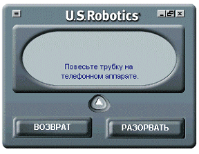В случае, если пользователь решит восстановить Интернет-соединение до истечения времени тайм-аута и нажмет кнопку «Возврат» действия будут развиваться следующим образом: программа предложит повесить трубку на телефонном аппарате (это следует сделать в течении четырех секунд см. Рис. 10), после чего модем переключит линию и начнется (Рис. 11) ускоренное восстановление сеанса связи (Quick Connect).