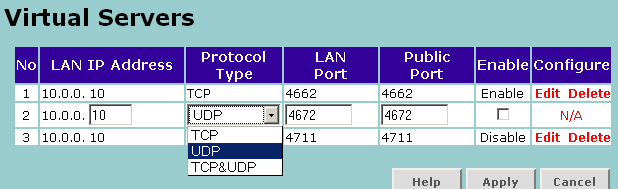 | задания различных public/private портов для виртуального сервера | да | |||