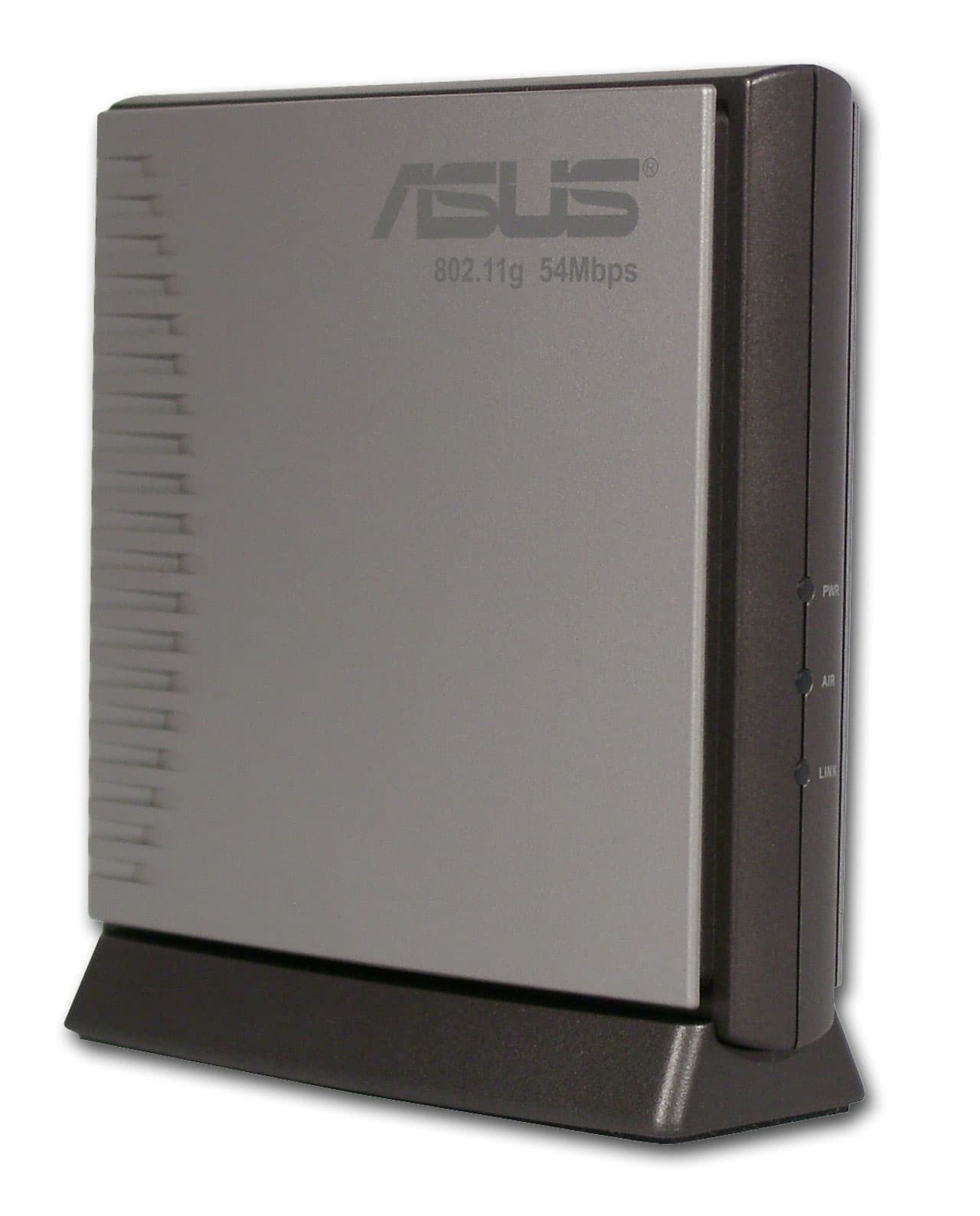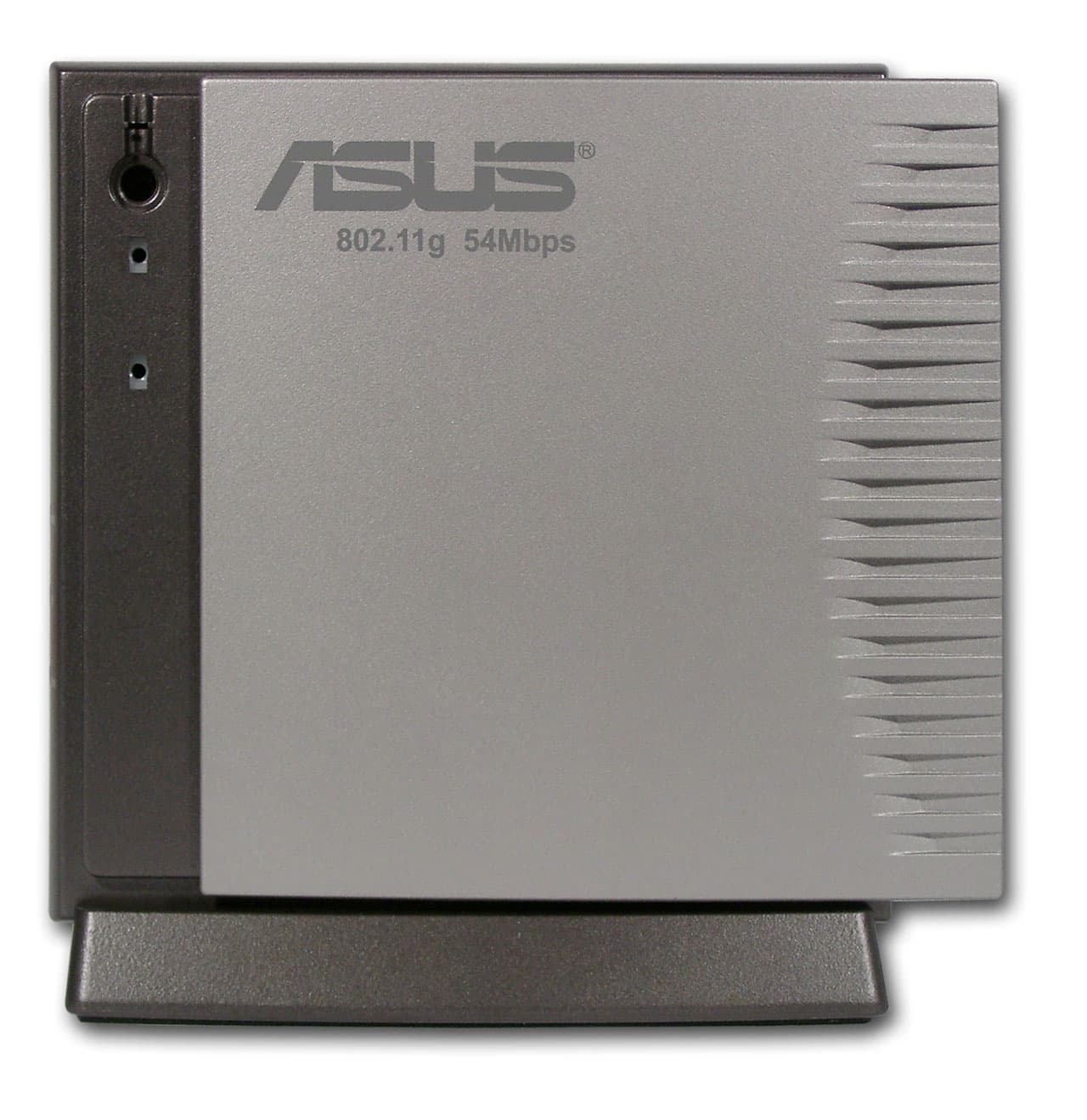 Следующий (и последний в этой статье) представитель семейства 802.11g точка доступа WL-300g. Устройство собрано в пластиковом корпусе темно-серых и серебристых тонов. При вертикальной установке, корпус устанавливается на массивное основание. На передней панели расположены три индикаторы индикатор питания, индикатор проводного сегмента и индикатор активности беспроводного сегмента.
