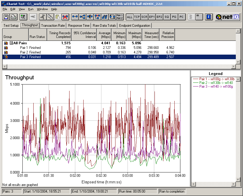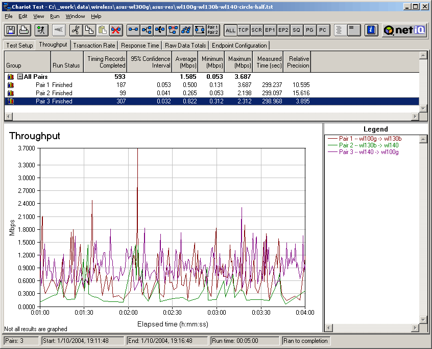 3й тест является аналогом предыдущего, вот только в качестве точки доступа используется чисто 802.11b устройство ASUS WL-500b