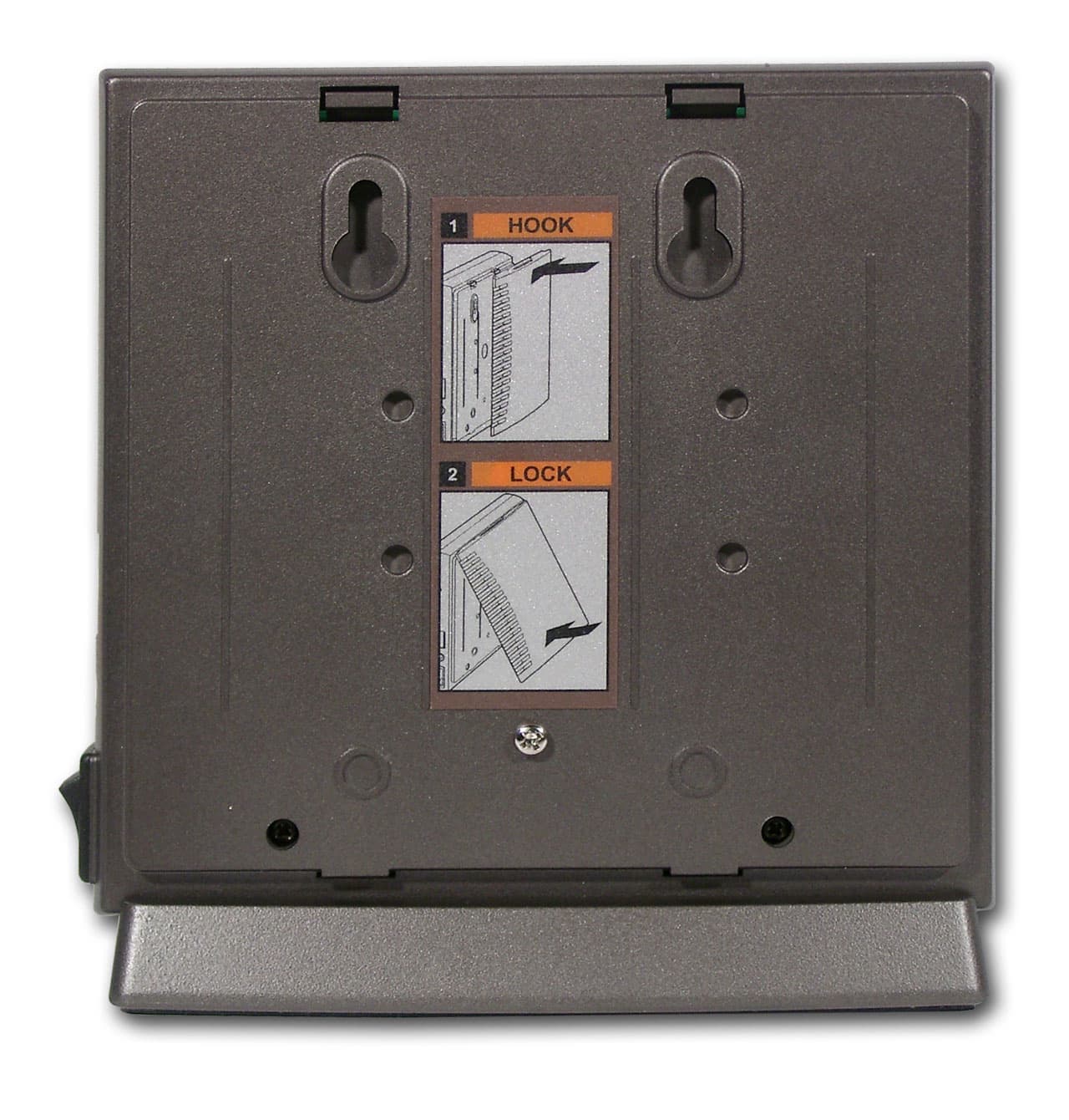 Стенка с другой стороны снимается полностью. Под ней находятся разъемы для крепления устройства на стене (а вот массивное основание в этом случае лучше снять). Кроме того, в комплекте идут два хитрых металлических кронштейна для других способов крепления устройства на вертикальных поверхностях.