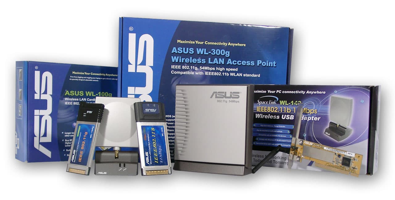 Компанию ASUS представила практически всю линейку устройств для работы в беспроводных диапазонах 802.11b и g. Не хватает только PCI и USB карт стандарта 802.11g. Не считая незначительных проблем у пары карт (которые должны быть исправлены в последующих версиях драйверов), устройства показывают неплохую скорость работы.