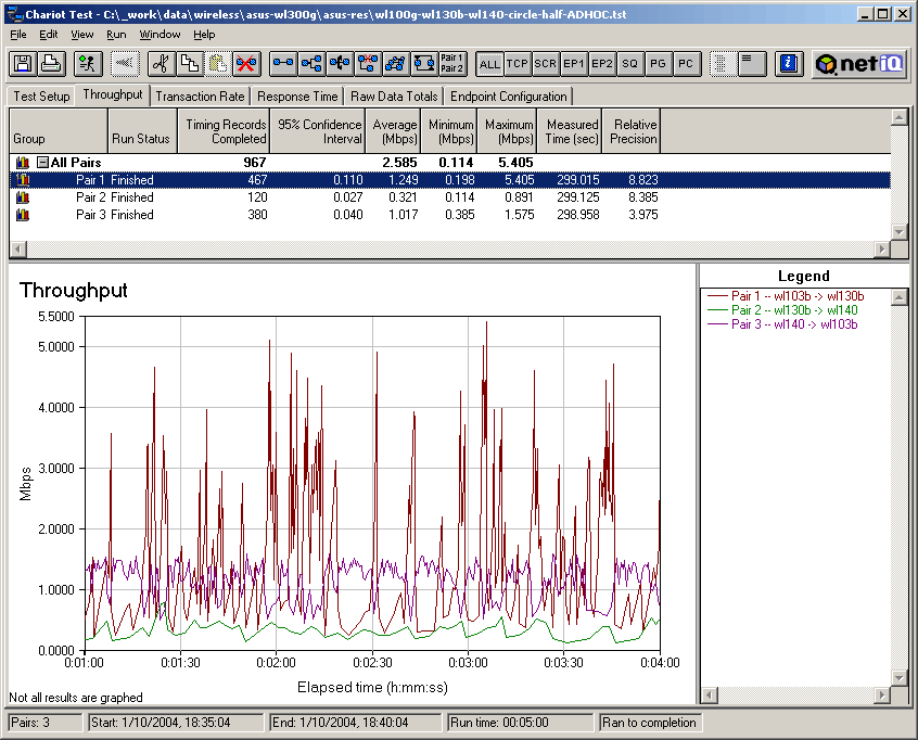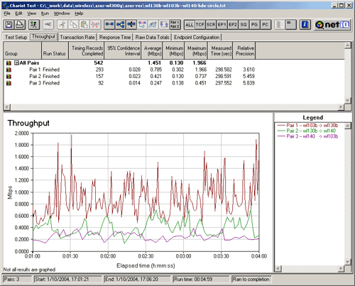 Карты показывают неплохую скорость в парном тесте и среднюю в режиме кольца. А вот WL-140 опять прыгала по скоростям, часто снижая их до 1, 2 Мбит.