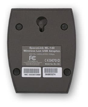 Порт для подключения USB находится сзади устройства. А внизу основания предусмотрено отверстия для крепления WL-140 на стену. Антенна у устройства внешняя и может вращаться на 180 градусов в продольном направлении. Возможность подключения другой антенны отсутствует.