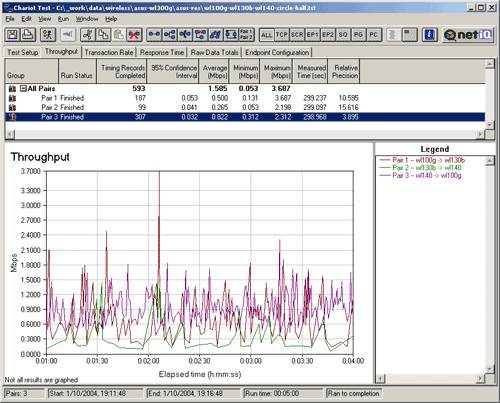 Тестировались три карты, две стандарта 802.11b (WL-130b и WL-140) и одна стандарта 802.11g (WL-100g). Запускались пять тестов: