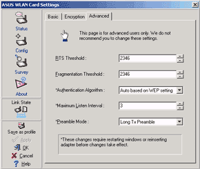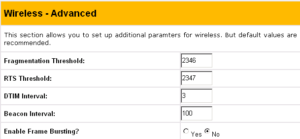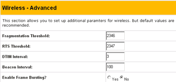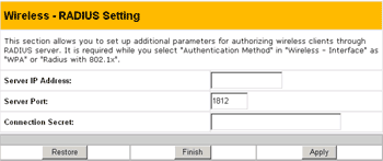 В разделе «Advanced» настроек позволяется задать дополнительные параметры беспроводного канала, а так же указать IP адрес RADIUS сервера. Следует отметить, что аутентификация клиентов посредством протокола 802.1x никоим образом не влияет на защищенность беспроводного канала (в смысле стойкости шифрования). В данном случае он используется лишь для проверки валидности клиента. Но уже тот факт, что производители стали встраивать хотя бы базовую поддержку 802.1x в свое оборудование, не может не радовать.