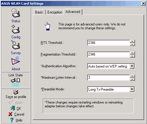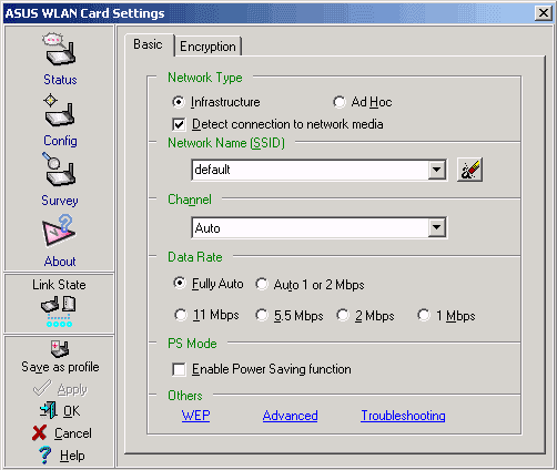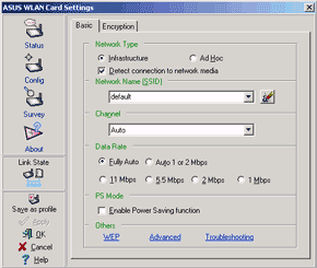В следующем разделе можно задать нужные параметры беспроводной сети. Кстати, тут присутствует функция энергосбережения, которая пригодится для сохранения энергии батарей в ноутбуке.