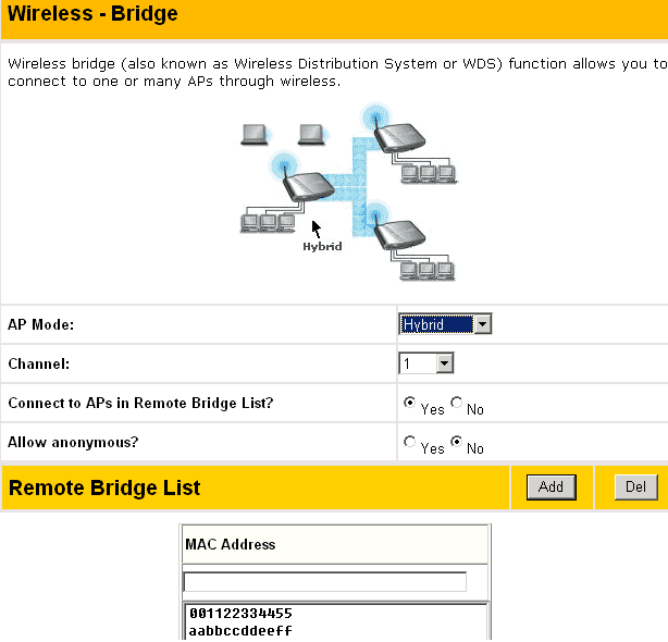 - WDS Only возможно подключение только беспроводных мостов (устройств, подобных WL-500b);