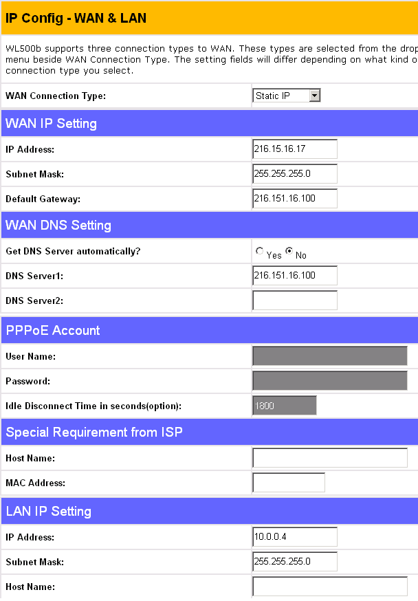 В разделе сетевых настроек LAN и WAN интерфейсов, можно выбрать один из трех типов WAN интерфейсов:
