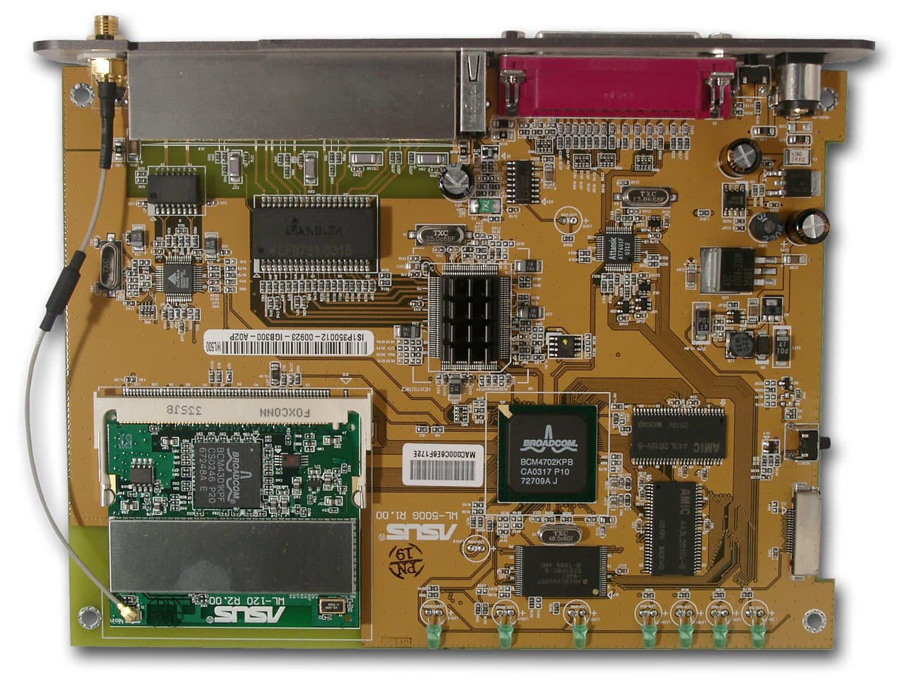 WL-500b построен на основе беспроводного сетевого процессора BCM4702 (BCM4702 AirForce(tm) Wireless Network Processor).